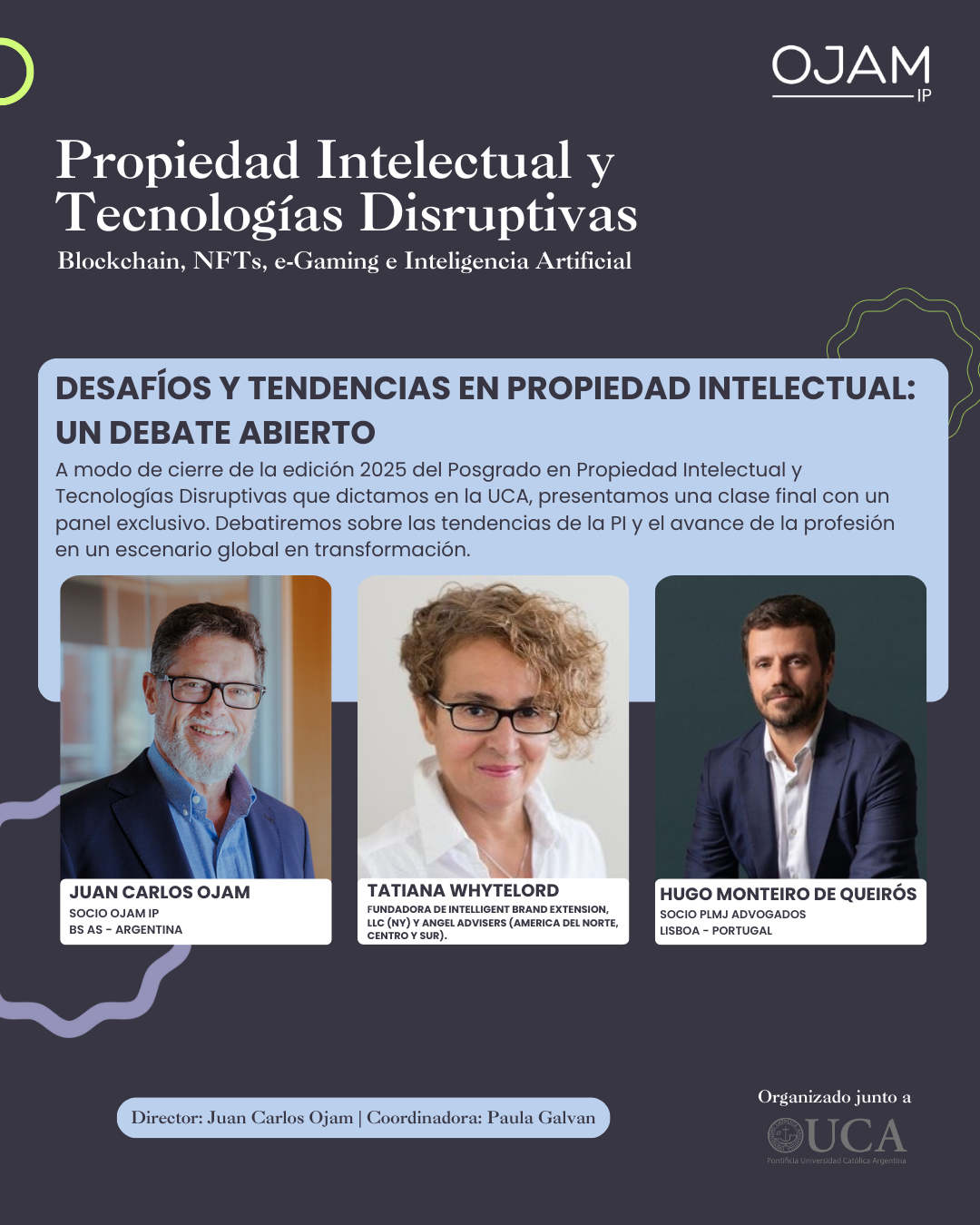 At Ojam IP we believe that great legal work is built with experience, excellence, trust and a deep understanding of the future. We are a firm founded by Juan Carlos Ojam, Mariel Chichisola, Camila Sirianni and Paula Galván, a team that combines decades of experience in intellectual property with the energy, innovation and fresh perspective of a new generation.
